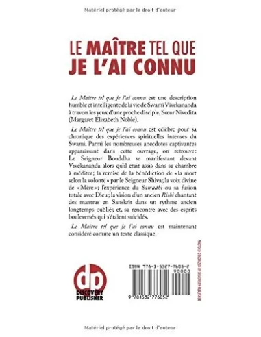 Le Maître tel que je l’ai connu est une description humble et intelligente de la vie de Swami Vivekananda à travers les yeux d’une proche disciple, Sœur Nivedita (Margaret Elizabeth Noble).
